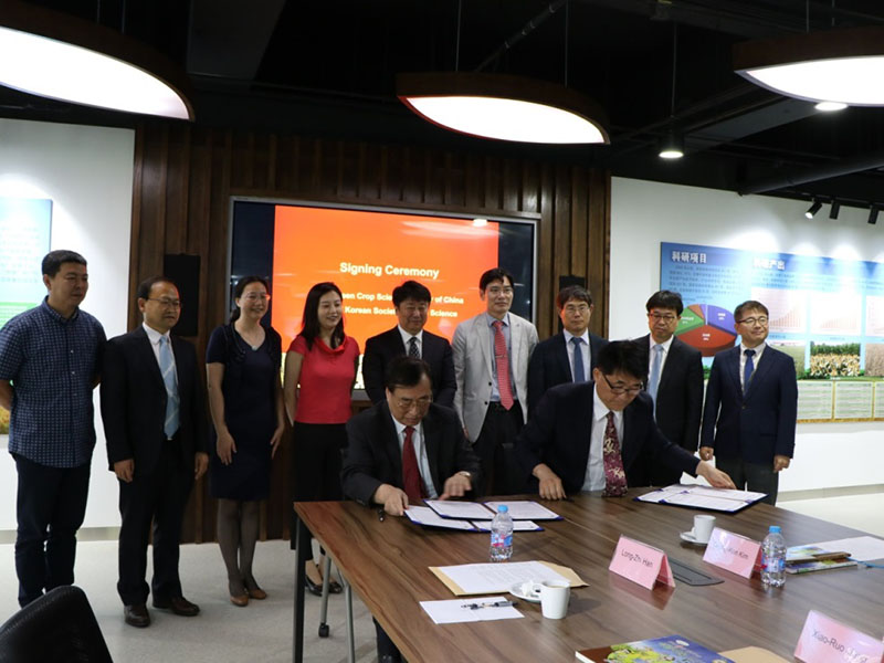 7月25日,中国作物学会理事长翟虎渠,中国作物学会秘书长、作科所所长刘春明会见了来访的韩国作物学会会长禹仙熙(Sun-Hee Woo)教授一行,双方就加强在作物科学领域的学术交流,全面加强东北亚及亚洲范围内的农业科技合作交换了意见,并就推进合作达成共识。翟虎渠、禹仙熙分别代表双方签署了中韩作物学会谅解备忘录。