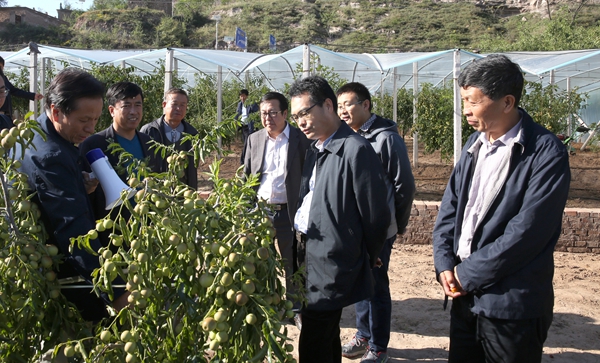 9月28日,我校冬枣引种栽培示范现场观摩会在吴堡举行,www.99365365.com汪有科教授团队在陕北成功引种冬枣,将陕西冬枣种植区域向北推移了近400公里,填补了陕北冬枣种植的空白,对陕北枣业结构调整和提质增效具有积极意义。陕西省林业厅副厅长党双忍,红枣专家、山西省农科院李登科研究员,省市林业部门、当地政府领导及专家参加观摩。