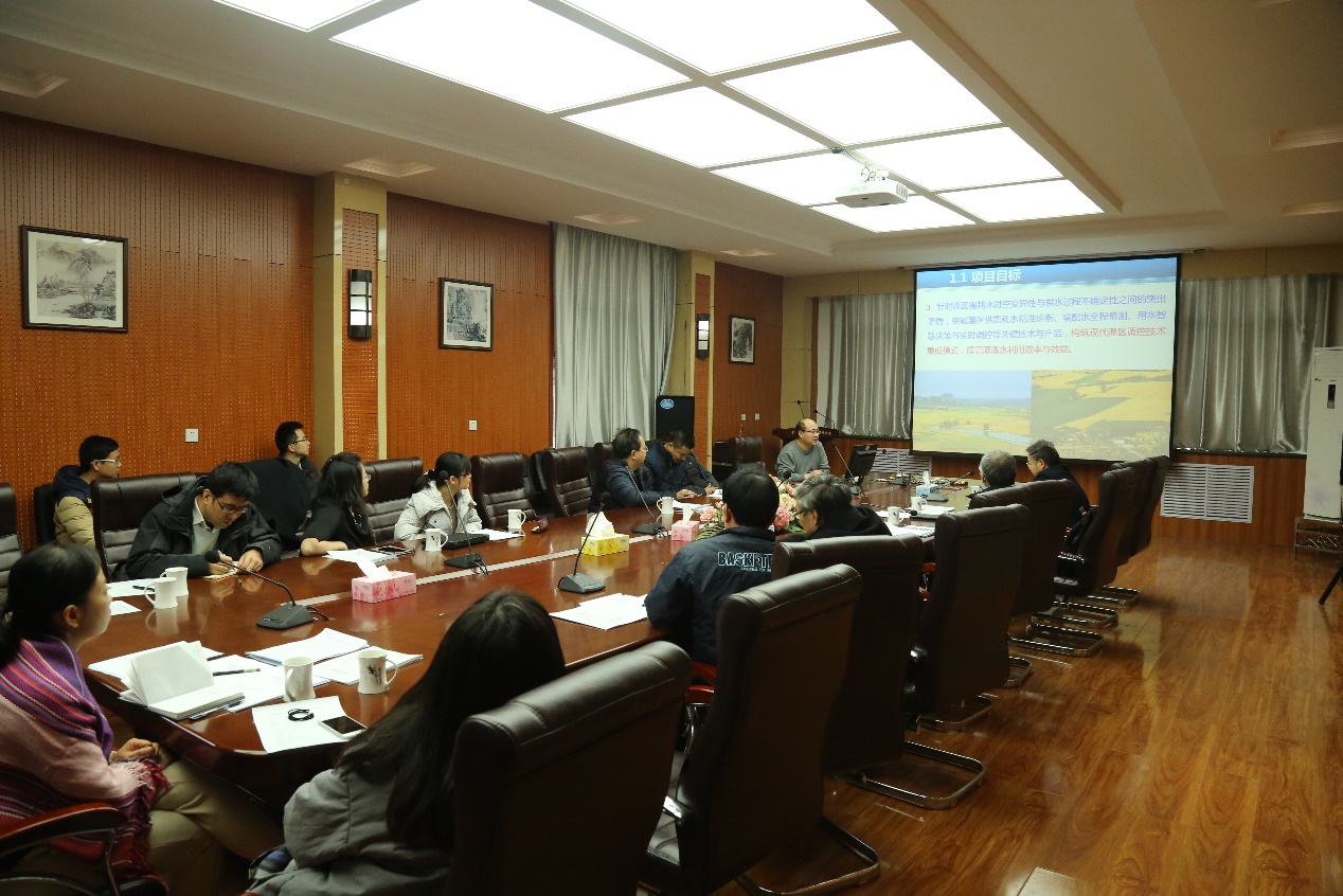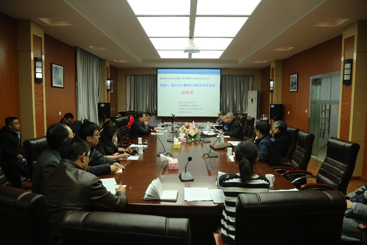 2017年12月29日,中心韩文霆研究员主持的国家重点研发计划“水资源高效开发利用”重点专项“现代灌区用水调控技术与应用”的课题三“灌区用水量测与调控技术及设备”的启动会在陕西杨凌顺利召开。该课题由西北农林科技大学牵头,中国灌溉排水发展中心、中国水利水电科学研究院和中国农业大学四家单位共同实施。参会人员为各子课题负责人、参加人、及部分研究生等。会议由西北农林科技大学中国旱区节水农业研究院院长蔡焕杰教授主持,并邀请中国水利水电科学研究院水利所所长李益农教高、西北农林科技大学水建学院吕宏兴教授、www.99365365.com范兴科研究员等作为课题咨询专家。